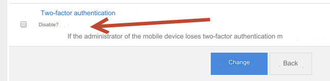 You can disable two-factor authentication. Change the manager and/or administrator details and disable: