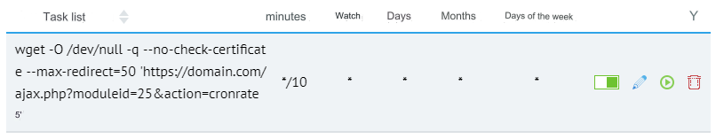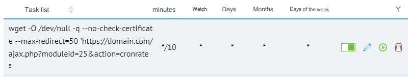 wget -O /dev/null -q --no-check-certificate --max-redirect=50 'https://domain.com/ajax.php?moduleid=25&action=cronrates'