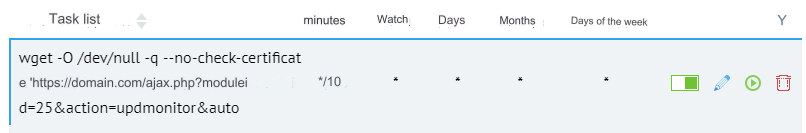 wget -O /dev/null -q --no-check-certificate 'https://domain.com/ajax.php?moduleid=25&action=updmonitor&auto'