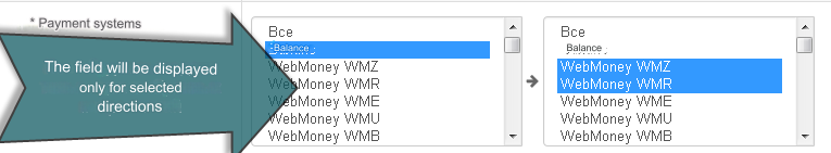 Payment systems - for which exchange directions this additional information will be displayed. field. To select multiple, hold down the Ctrl key on your keyboard and select the ones you want. Select All if the field should be displayed for all directions.
