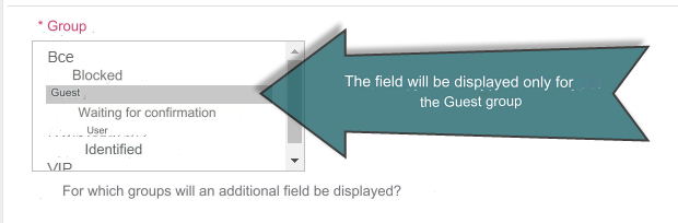 Group - for which groups this additional feature will be displayed. field. To select multiple groups, hold down the Ctrl key on your keyboard and select the groups you want. Select All if you want the field to appear for all groups.