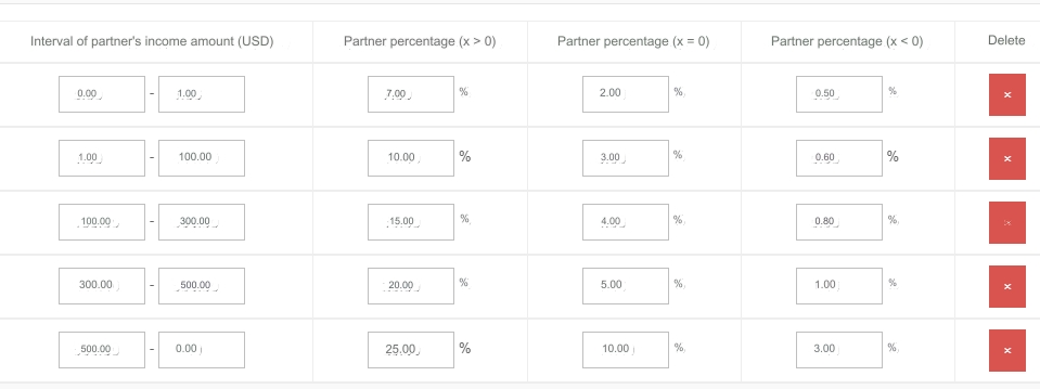 The last field of the affiliate’s income amount interval in the table: 0.00 = infinity