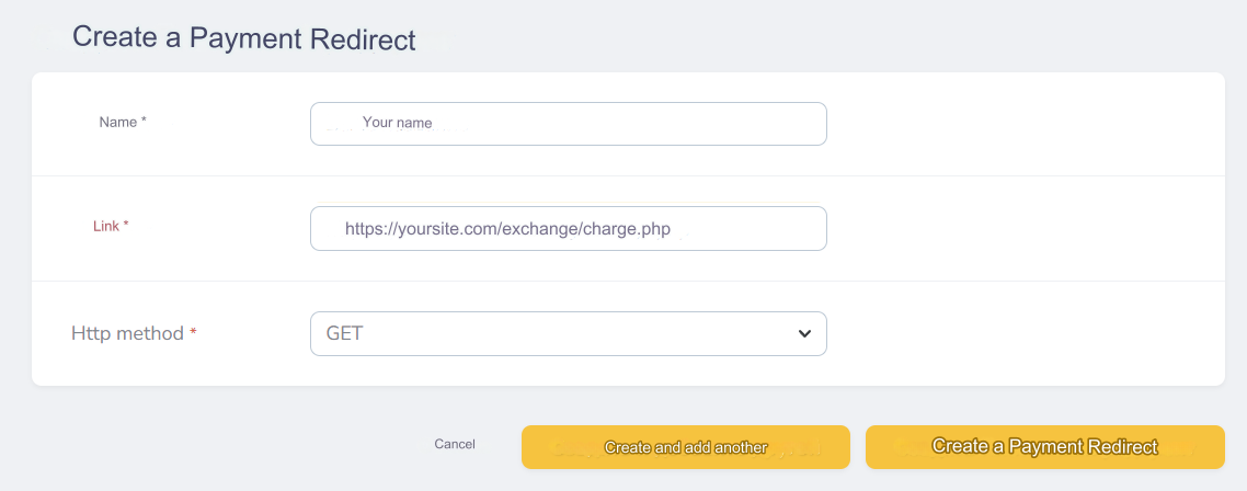 After completing the form, click Create Payment Redirect