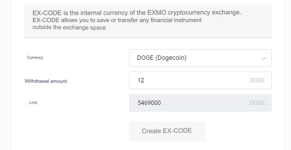 The exchange supports the generation of EXMO Code for cryptocurrencies.
