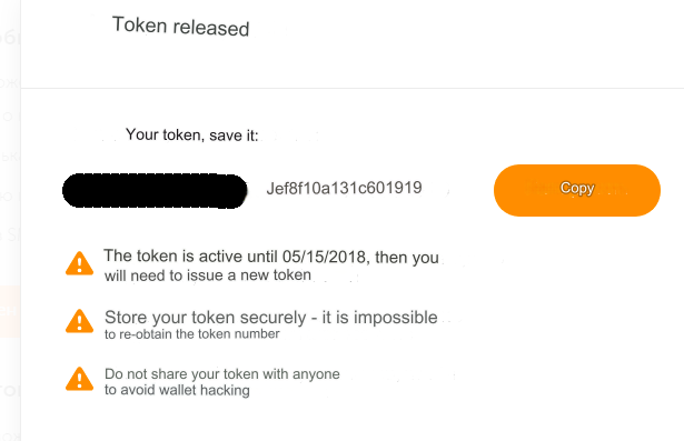 Please note. The token is active for 180 days. Then you will need to release a new one.