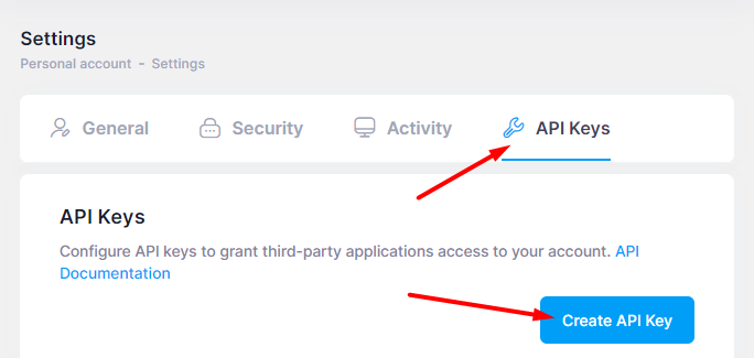 Go to the Settings - API keys section and click the Create API key button.