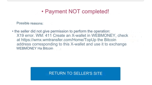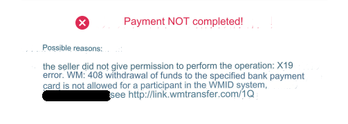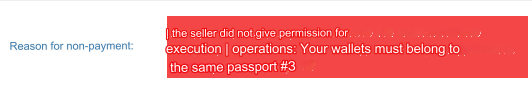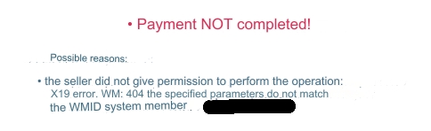 If payment is made to a third party wallet, which is prohibited by the rules of the WMT system, the interface will return an error:
