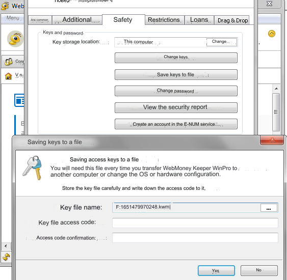 Next, enter the “Access code for the key file” and “Confirmation”.