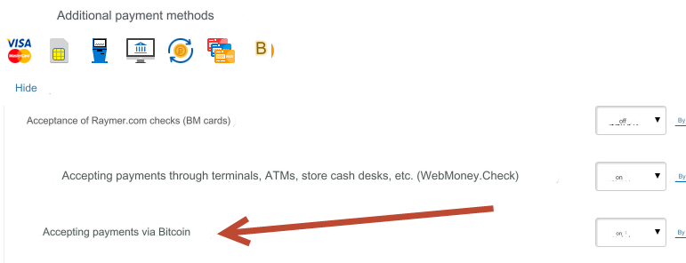 To use this option, in your wallet settings (Additional payment methods), enable Accept payments via Bitcoin: