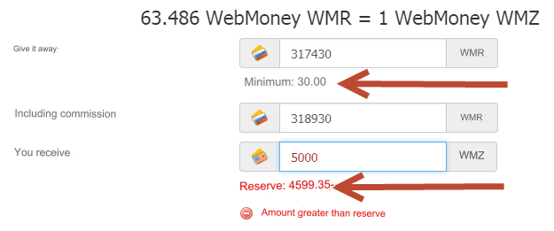 Min. amount to exchange: 30 WMR