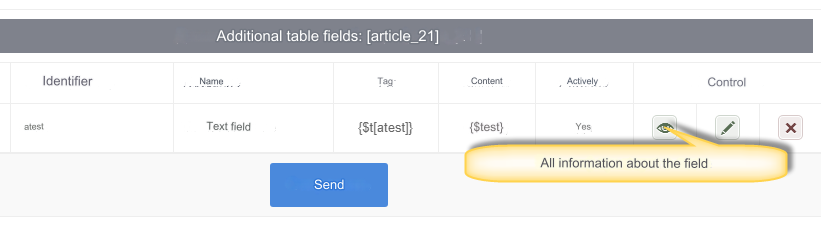 An example of inserting the output of additional fields into a template using the example of a module Articles