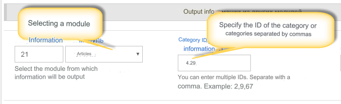IDs of categories from which to display information - indicate the ID of the category of the selected module.