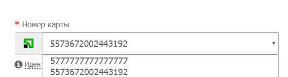 верифицированные карты выведены селектом при оформлении заявки. Эта опция работает ТОЛЬКО для Типа системы Банковская карта.