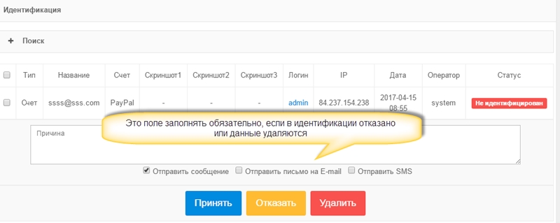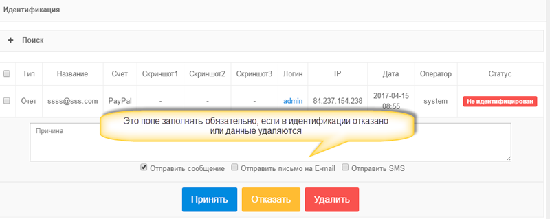 Исключение, Верификация номера банковского счета. Этот тип верификации требует обработки заявки.