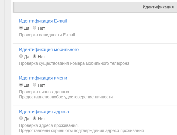 Верификацию банковских карт тоже невозможно включить в карточке пользователя.