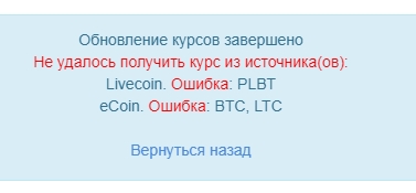 Если вы видите в ошибках список валют, которые обновить не удалось, и вы их используете, то переключитесь на другой источник получения курсов.
