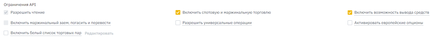 API key - введите API key из сгенерированных ключей в настройках Binance Secret key - введите Secret key из сгенерированных ключей в настройках Binance