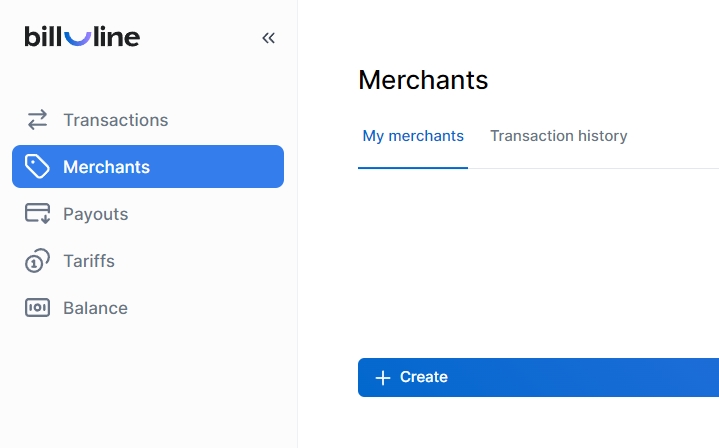 Войдите в аккаунт, перейдите на страницу Merchants -> Create