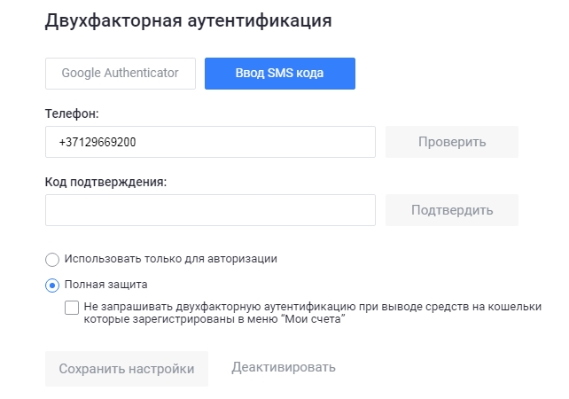 Настройки в аккаунте биржи идентичны настройкам EXMO Code.