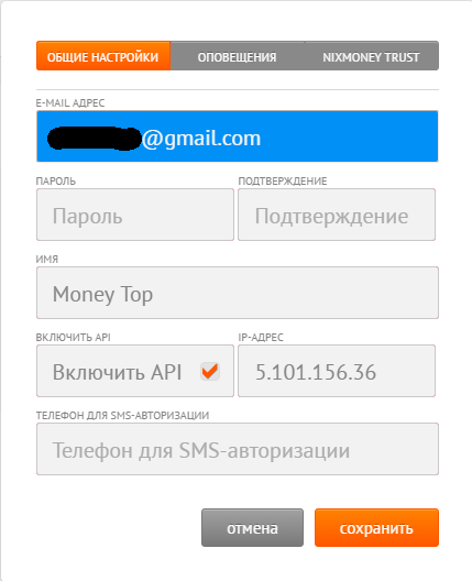 Account - введите ваш счет в Nixmoney. С префиксом U для USD и E для EUR E-mail - введите ваш E-mail входа в Nixmoney Password - введите ваш пароль входа в Nixmoney Сохраните настройки.