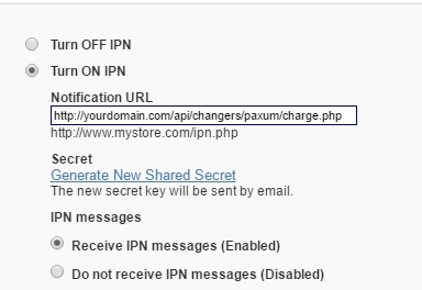 Нажать: Generate New Shared Secret. Присланный ключ ввести в админке: (Обмен валют - Платежные системы - Paxum USD/EUR - IPN Shared Secret)