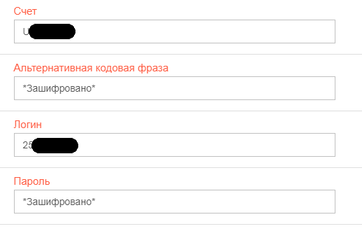 Внимательно заполняйте эти поля. Если в процессе настроек вы не уверены в правильности их заполнения, затрите надпись *Зашифровано* и введите данные вновь