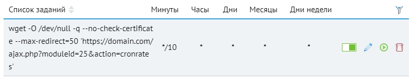wget -O /dev/null -q --no-check-certificate --max-redirect=50 'https://domain.com/ajax.php?moduleid=25&action=cronrates'