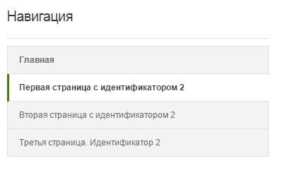 Ідентифікатор визначає групу сторінок. Наприклад: ідентифікатор 2 та назви всіх сторінок із цим ідентифікатором будуть виведені в блоці праворуч.