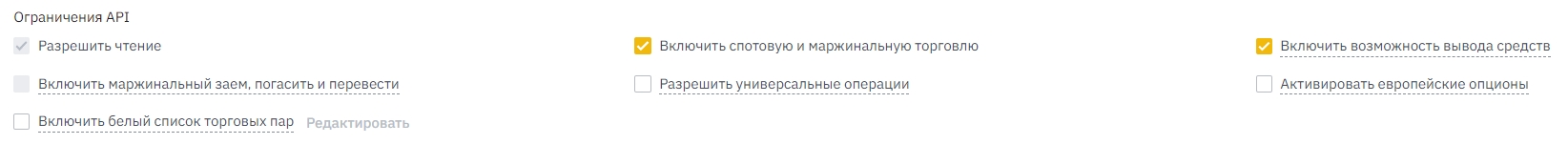 Налаштування в обліковому записі Binance