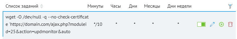 wget -O /dev/null -q --no-check-certificate 'https://domain.com/ajax.php?moduleid=25&action=updmonitor&auto'