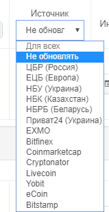 Вибране джерело та курси будуть оновлюватися за налаштуваннями Планувальника (CRON) Вибрати Не оновлювати - курси в цьому напрямі не оновлюватимуться.