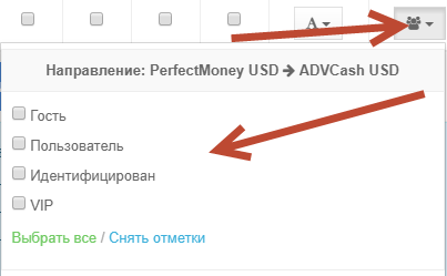 Клацніть на іконку вибору груп для потрібного напрямку.