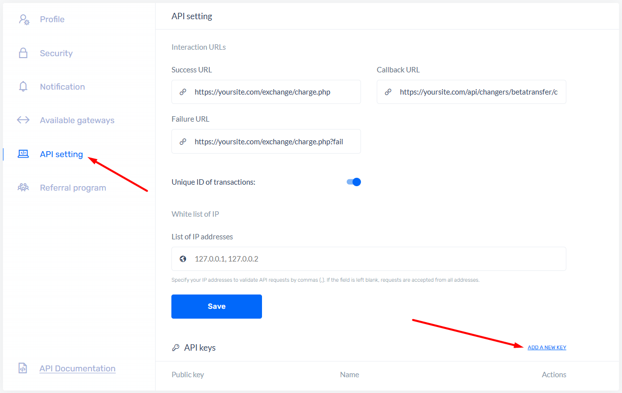 Увійдіть до облікового запису та перейдіть до розділу: API Setting