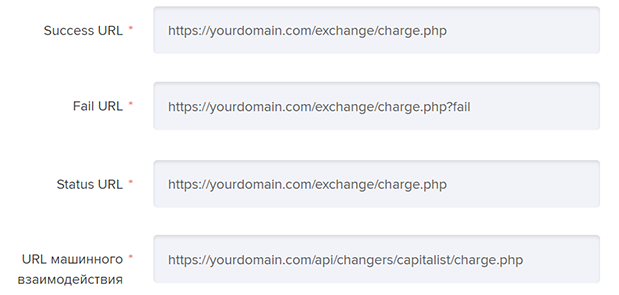 URL машинної взаємодії - https://yourdomain.com/api/changers/capitalist/charge.php