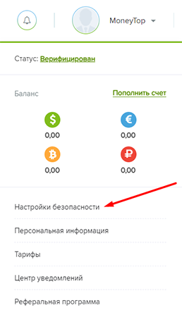 Після отримання доступу натисніть на ваш логін і перейдіть на сторінку налаштувань безпеки: