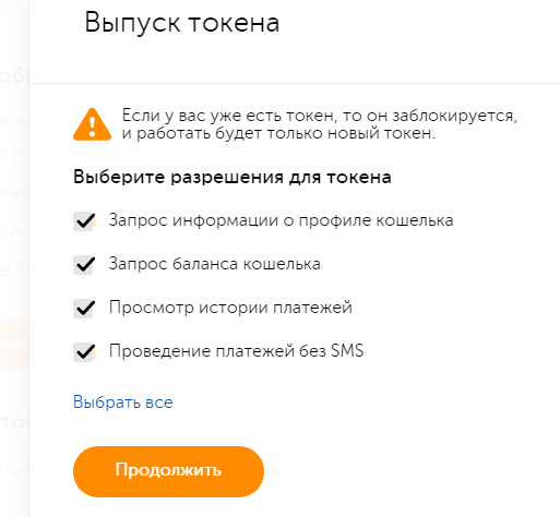 Виберіть всі доступні дозволи для токена і натисніть: Продовжити.