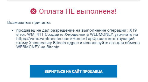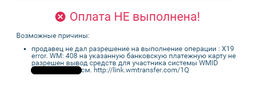 Якщо оплата буде проходити на гаманець 3-ї особи, що заборонено правилами системи WMT, то інтерфейс поверне помилку: