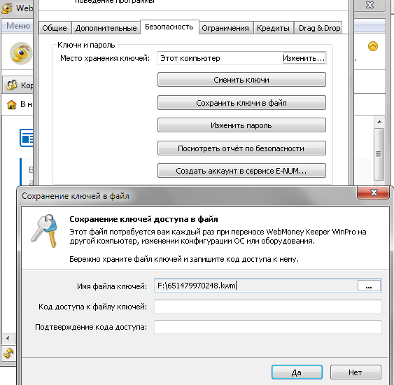 Далі "Зберегти ключі у файл" і введіть цифри, які вимагають.