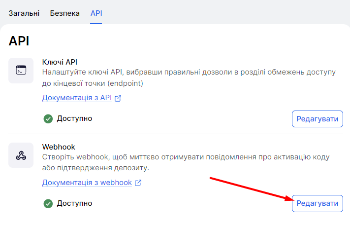 Поверніться на сторінку API та перейдіть до редагування Webhook: