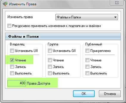 Залежно від налаштувань вашого сервера права (CHMOD) можуть бути: 444 або 400.