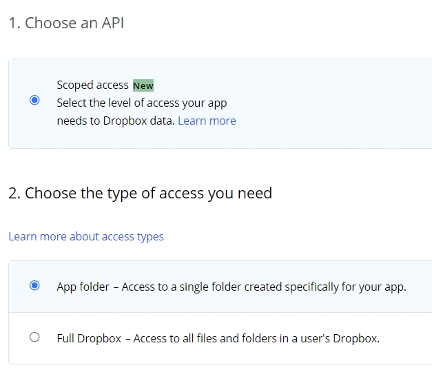 Створити програму: https://www.dropbox.com/developers/apps/create