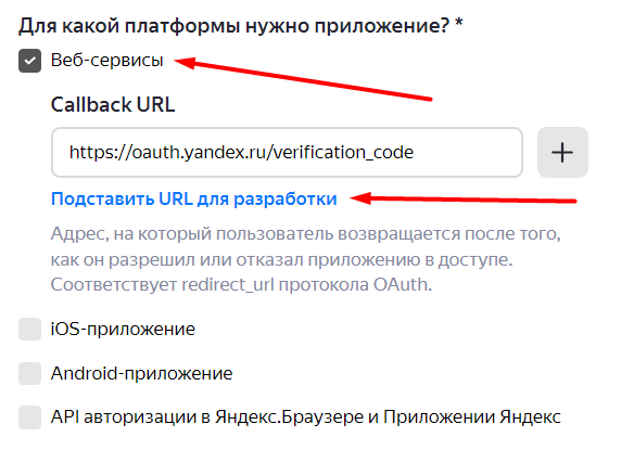 Платформи - Веб-сервіси та клацніть Підставити URL для розробки