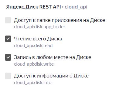 Доступи - Яндекс.Диск REST API та позначте Запис у будь-якому місці на Диску, Читання всього Диска