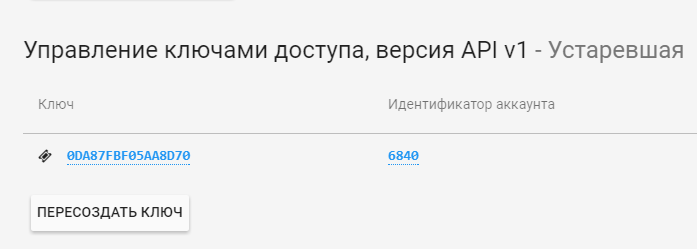 Тут ID та ключ. Вони знадобляться для налаштування в адмінці.