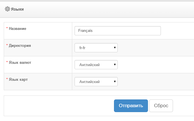 Додаємо нову мову, попередньо створивши на сервері директорію мови з файлами мов. Дивитесь розділ: Навчання - Мовні версії сайту