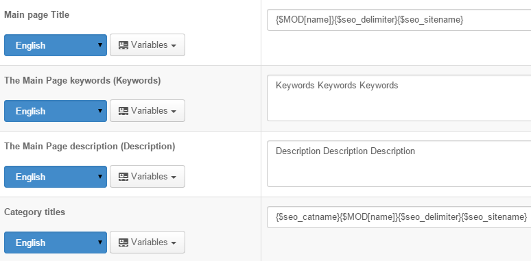 У налаштуваннях модуля заповнюєте всі поля, де є перемикання мови. Або використовуєте змінні: